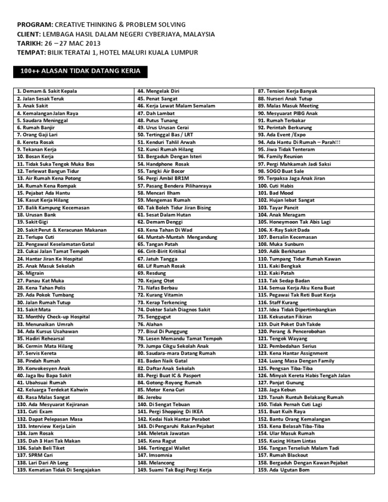 159 Idea Alasan Tak Datang Kerja Sayidahnapisahdotcom