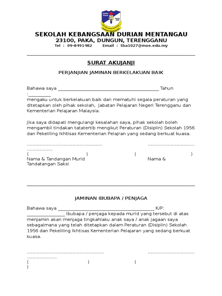 Contoh surat aku janji ibu bapa sekolah kebangsaan limau limau beluran peti surat 27 pulau jambongan 90.